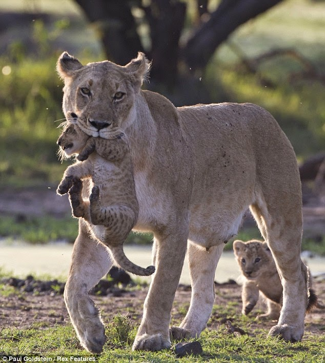 所有记录在案的猫科物种,从家猫到老虎、狮子、豹子、猎豹,母亲都是用嘴叼住幼崽的颈背皮肤来搬运的。