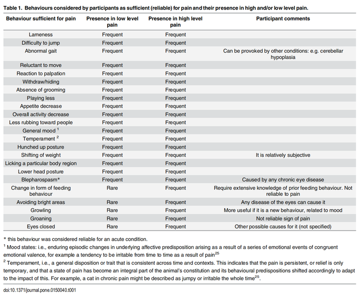 "it may be difficult to detect pain in cats, because they do not demonstrate overt pain-associated behaviour"
